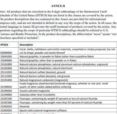 HS Chapters: 25–32, 34, 38, 39, 40, 44, 48, 49, 71, 72, 74, 75, 79, 80, 81, 85.